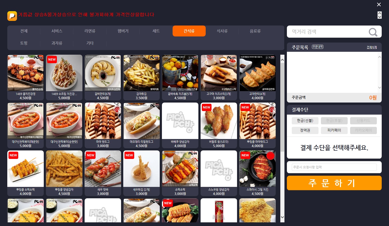 * 과자: 대부분의 PC방에서는 다양한 종류의 과자를 제공합니다. 감자칩, 쿠키, 비스킷 등 좋아하는 과자를 먹으며 게임을 즐겨보세요. 단, 너무 짜거나 단 과자는 수분을 빼앗길 수 있으므로 적당한 양을 먹는 것이 좋습니다.